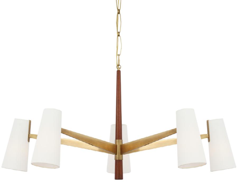 Notch coffee table in white oak from Sunday Shop, sundayshop.co. Vintage Moroccan beni rug. Cylinder stone side table from Schoolhouse, schoolhouse.com. Hood chandelier in bent polyethylene and white oak from Ravenhill Studio, ravenhillstudio.com