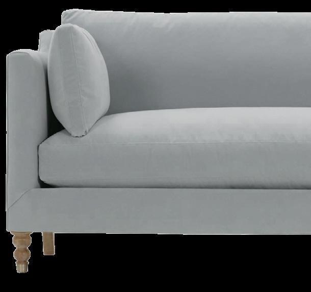 LIVING ROOM PG D-69: Custom couch, Ottoman from Poly & Bark, polyandbark.com. Light fixture from Wayfair, wayfair.com. Wall color in Swiss Coffee by Benjamin Moore, benjaminmoore.com