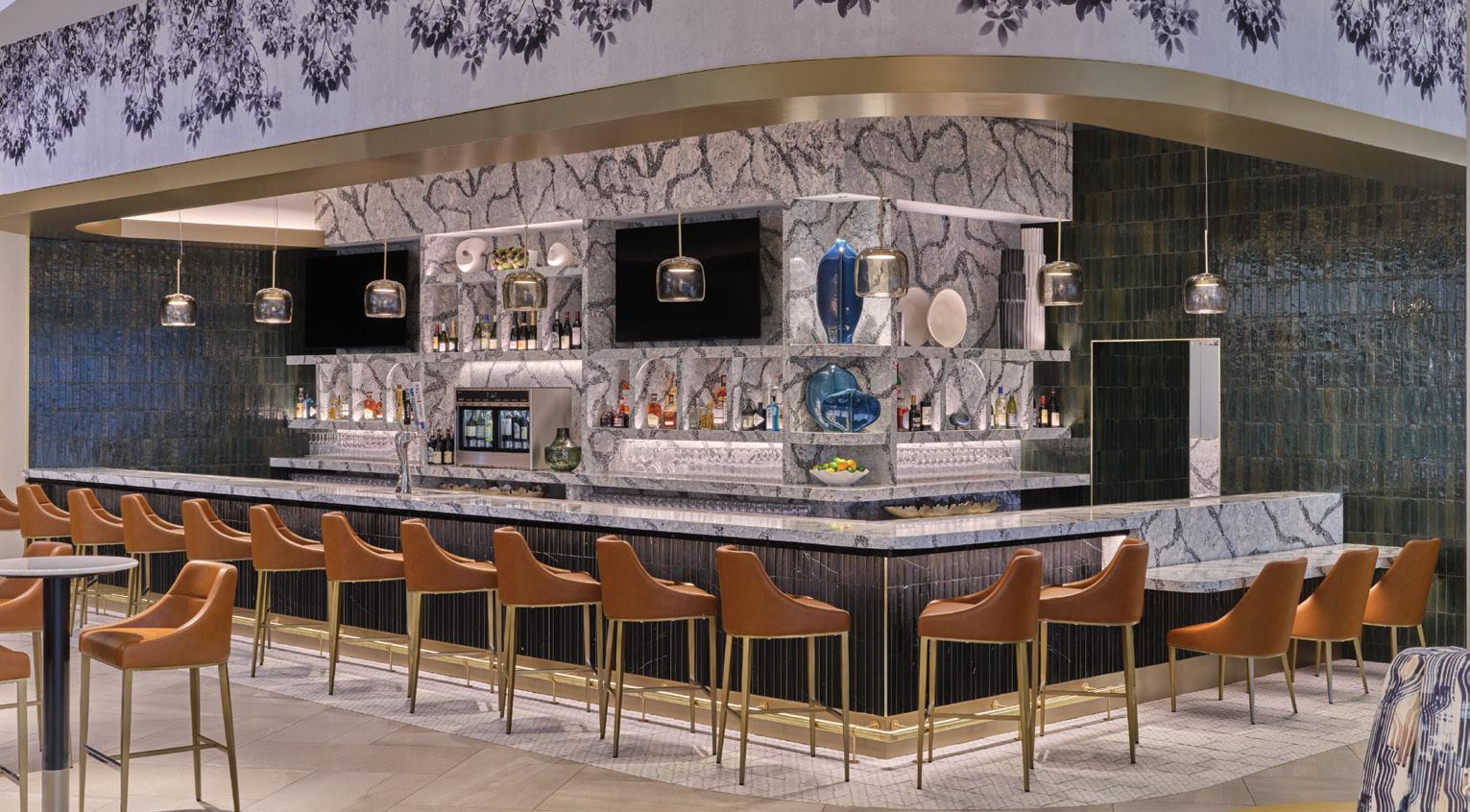 DESIGNER: Young Huh Interior Design, younghuh.com. RESORT PG 52: Bar countertops in Brittanicca by Cambria, CambriaUSA.com