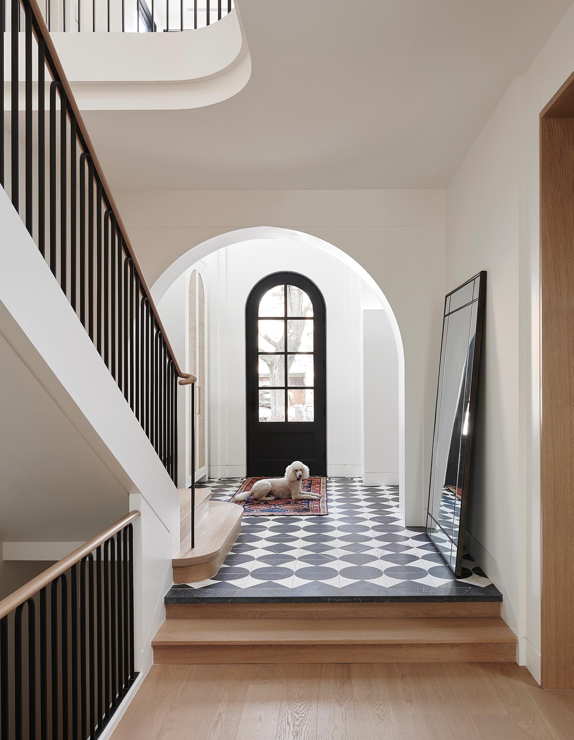FOYER PG D-67: Byron tile in Intarsio from Euro Tile & Stone, eurotilestone.com. Vintage rug from Elte, elte.com. Oak flooring from Unik Parquet, unikparquet.com.