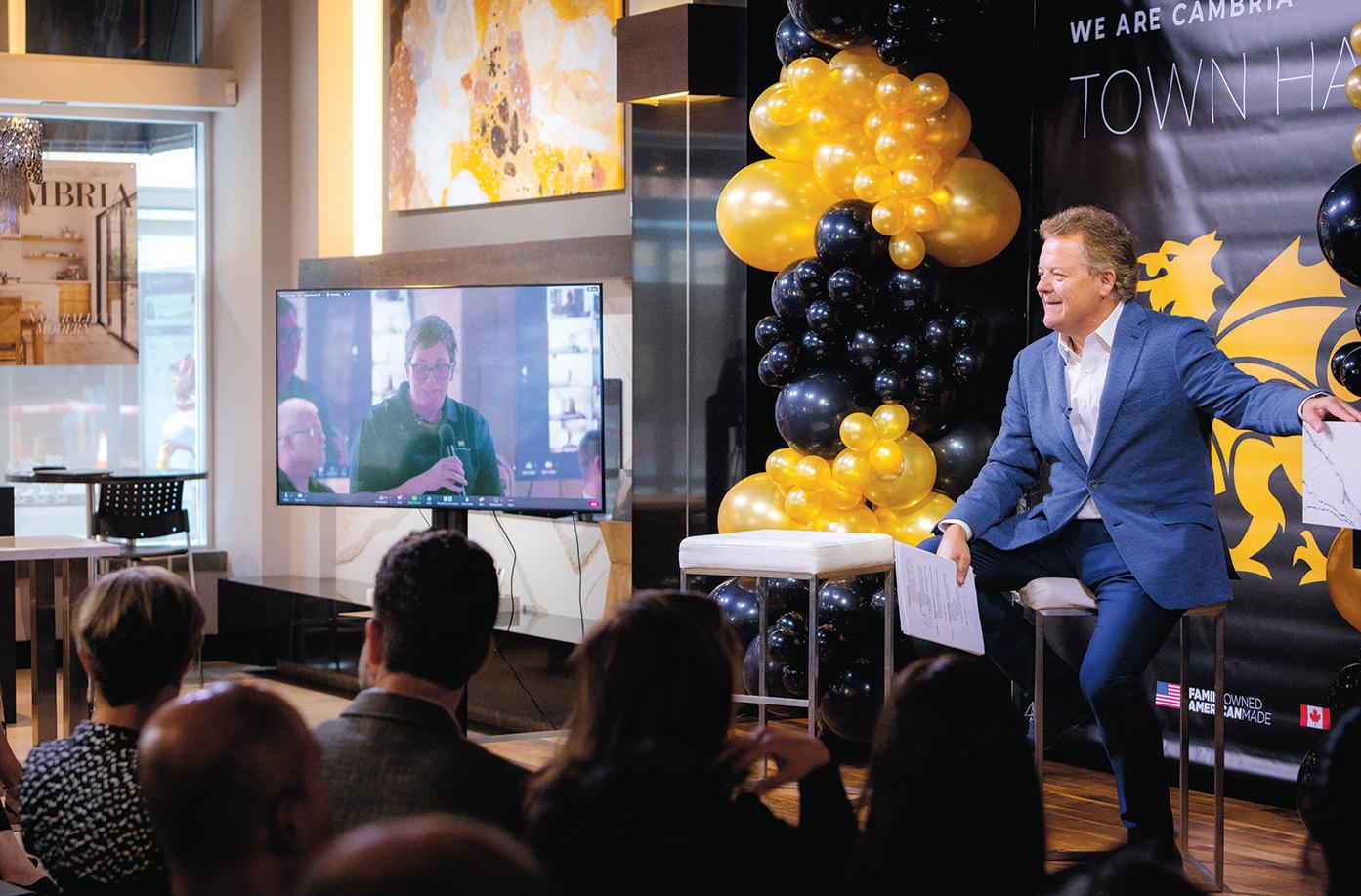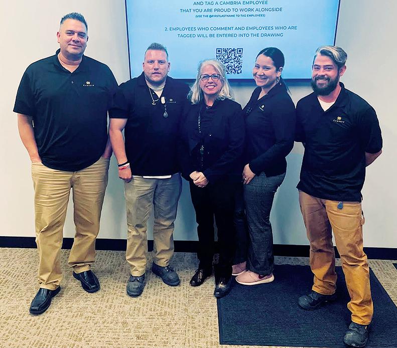 During Cambria’s Town Hall in September, employees from all across the country (and Canada) tuned in to hear from President and CEO Marty Davis, along with other company leaders, as they shared business updates, celebrated successful initiatives like Cambria’s English language classes, and introduced exciting new innovations. There was also a virtual tour of Cambria’s brandnew Houston Sales and Distribution Center and an engaging question-andanswer session.