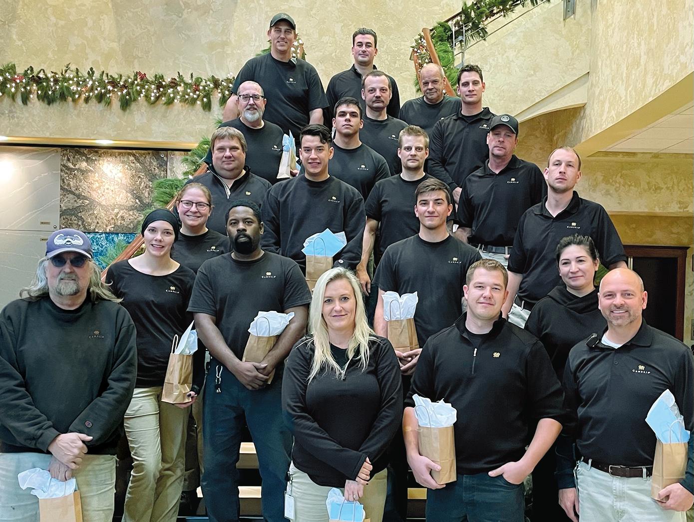The unofficial holiday season kicks off at Cambria in early October, when Butch Brey, VP of Plant Operations for Cambria’s Le Sueur Slab Manufacturing Facility, directs Scott Zeiher’s grounds crew to get started on the process of hanging outdoor lights.