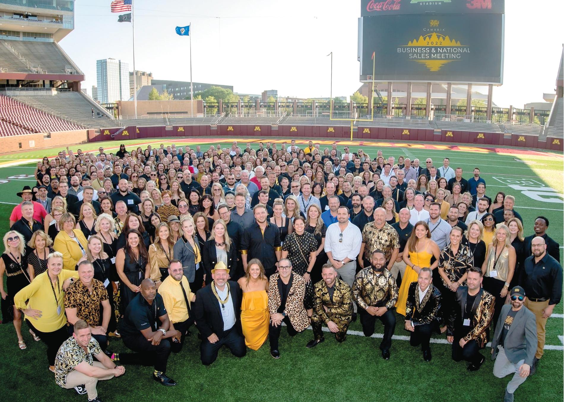 The 2022 Business & National Sales Meeting was held in Eagan, MN, at the Omni Viking Lakes Hotel. A total of 347 Cambria employees attended the meeting over the week. The meeting included 18 plant tours in Le Sueur, MN, leadership presentations, 27 panels and breakout sessions, and a presentation of 116 service awards!