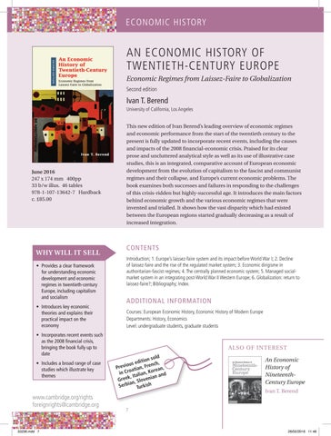 This new edition of Ivan Berend’s leading overview of economic regimes and economic performance from the start of the twentieth century to the present is fully updated to incorporate recent events, including the causes and impacts of the 2008 financial-economic crisis. Praised for its clear prose and uncluttered analytical style as well as its use of illustrative case studies, this is an integrated, comparative account of European economic development from the evolution of capitalism to the fascist and communist regimes and their collapse, and Europe’s current economic problems. The book examines both successes and failures in responding to the challenges of this crisis-ridden but highly-successful age. It introduces the main factors behind economic growth and the various economic regimes that were invented and trialled. It shows how the vast disparity which had existed between the European regions started gradually decreasing as a result of increased integration.