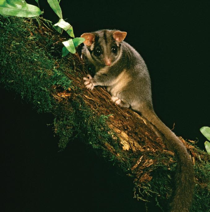 Leadbeater's possum (Gymnobelideus leadbeateri) is Victoria's faunal emblem and is mostly restricted to small areas in the Central Highlands of Victoria. Its habitat consists primarily of mountain ash trees (Eucalyptus regnans), which are also featured on the cover of this publication. Habitat loss due to logging and climate change continuously threaten Leadbeater's possum populations. It is listed as Critically Endangered on Victoria's Flora and Fauna Guarantee Act 1988 Threatened List.