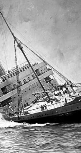 For a short while in 1906, the Lusitania was the largest vessel afloat. It was travelling from New York to England in 1915, during WW1. Before its departure, it had been warned that torpedoing was a possibility, but the attack came without caution. A German submarine sent a first torpedo that then provoked an explosion inside the ship. After only 18 minutes, it sank, leaving passengers dying in freezing water. About 1197-1960 people died.