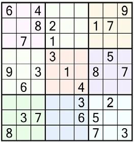 Fill the grid so that every column, every row and every 3x3 box contains the digits 1 to 9.