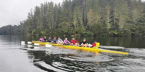 Rowers heading south from the club are Wendy Reynolds, Rochelle Panting, Roz Harrison, Pip Leppard, Chenae Swinerd, Piri Craig, Jess Adlam, Kirsty Moffat, Laura Collier, Richard McDermott, James Bryan, Ann Edmondson, Tony Edmondson, Tanya McDermott, Claire Hood, Allen Loomb, Aaron Leppard, Les Craig, Wayne Asplin