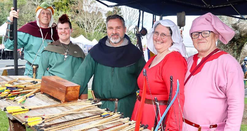 entertainers, from left, Geoff Boxell, Gareth Wulf-Robertson, Mark Tustian, Jeanette Reid and Keith Mudgway an opportunity to let the public test their archery skills. For the first time since 2019 more than 160 stall holders and crowds flocked to Franklin St, which was closed to traffic for the day. The craft day has been running for more than 40 years.