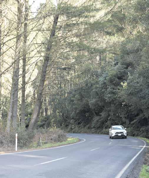 In the peak of the tourist season vans ferry cyclists along the road to and from the Timber Trail and logging trucks also use the route on a daily basis.