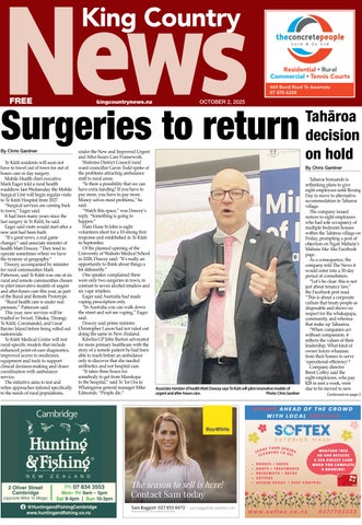 Letter to the editor Cambridge newsroom update We have been fortunate here in Cambridge to have been spared the brunt of Cyclone Gita, and I think we should consider ourselves very lucky indeed. My faith in humanity was restored this week when I had a phone call from the lady who was the subject of last week’s column. Turns out, it was a case of crossed wires and she was in fact taking the bags for family members and is not a shameless bag hogger. I was really pleased to hear this, as were the wonderful sewing collective. Great to know that the bags are out and about being used. Which is the whole point, really. This week I also got to talk with former Goodwood principal Jack Reid about his cancer journey and how helpful the Cancer Society has been to him. I was struck by the gravity of what he is going through, but also by his strength and that of his wife Glen. They graciously opened their home to me and even gave me a turmeric mocha, which was surprisingly delicious and evidently very good for you. Cancer is a massive and lifechanging thing to be going through, and it’s great that the Cancer Society is there to support people at a time in their lives when they need it the most. Anyway, have a great week everyone and we hope you enjoy the paper – as ever, if there’s anything you’d like to see included please sing out. Claire Castle, Editor