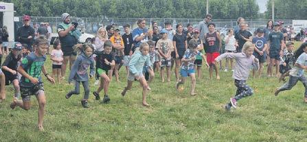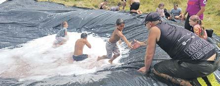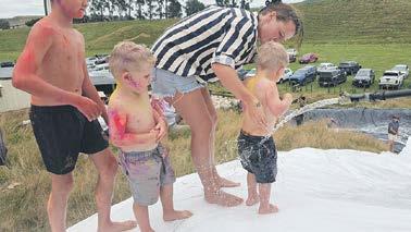 Helping hand: After the colour run, the water slide into a water filled hole at the bottom allowed kids to clean up at the Āria Sports Day.
