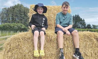 Photo: Reymer Ag Cousins Noah and Max rest on hay bales. Photo: Michael Jeans Rain and fertiliser has kept the pastures green. Photo: Supplied