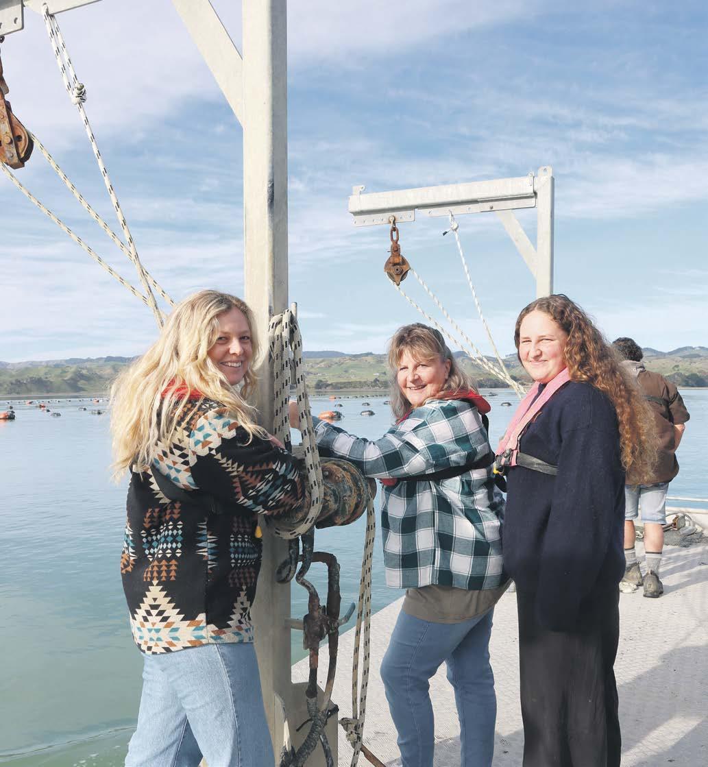 On the northwestern edge of the King Country, where the road gives way to harbour and tide, farming doesn’t always happen on land. At Aotea Harbour, the Dockery family has quietly farmed the water since the 1980s - producing hundreds of tonnes of food from an area smaller than many King Country paddocks. It is a family affair for, from left, Kelly, Janine and Georgia Dockery who all play a role in running Aotea Marine Farms.