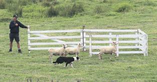 Woops, one of the sheep bolts while Trev and master Graeme Brier of Piopio look on during the sheep trials at Āria Sports Day.