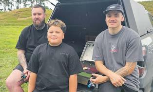 Matene Mason with son Riki, 10, from Masterton and Zakaia Lewis (Dannevirke) maintain their shearing combs from the back of their ute.