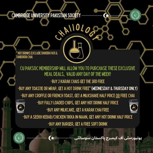PakSoc Membership will give you access to discounts for our events throughout the year, particularly beneficial for our flagship events such as the Cambridge x Oxford collab, Eid Garden Party and much more!