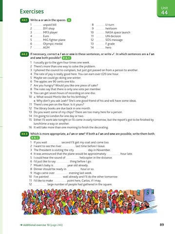44.2 If necessary, correct a / an or one in these sentences, or write ✓. In which sentences are a / an and one both possible? B & C