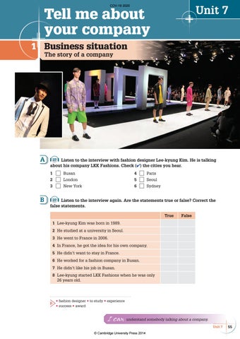 understand somebody talking about a company. Unit ni 7 © Cambridge University Press 2014