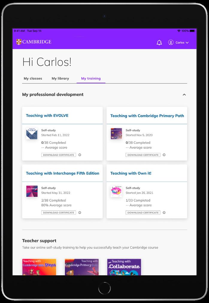 Trusted by over 1 million teachers and learners, Cambridge One helps you grow your skills and confidence by providing everything you need in a single home for digital learning.