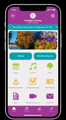 Ripa, Clerk Gilbert “Whip” Wilson, Sheriff Michelle A. Gentek-Mayer, Surrogate Grace C. MacAulay, Prosecutor ALL DATES AND TIMES OF THE LISTED EVENTS ARE SUBJECT TO CHANGE DUE TO WEATHER. FOR THE LATEST UPDATES ON ALL EVENTS VISIT CAMDENCOUNTY.COM OUR VARIOUS SOCIAL CHANNELS AND SIGN UP FOR OUR NEWSLETTER. Concert Cancellation for Friday Due to Get Connected with the Camden County App COMING SOON!