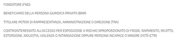 40 Menu a tendina con i requisiti/caratteristiche del titolare effettivo