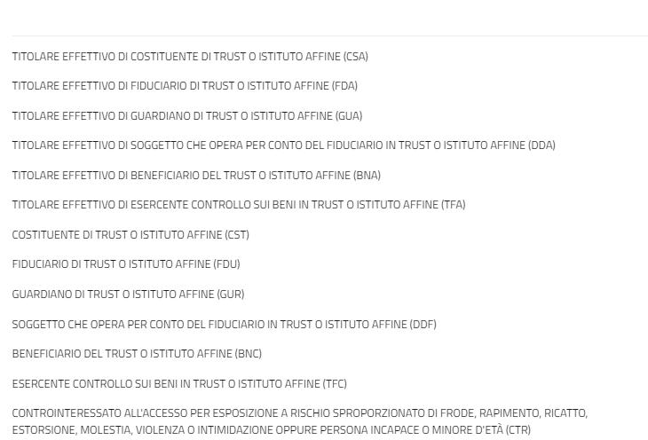 • una sezione speciale per i trust produttivi di effetti giuridici rilevanti ai fini fiscali e «istituti giuridici affini»