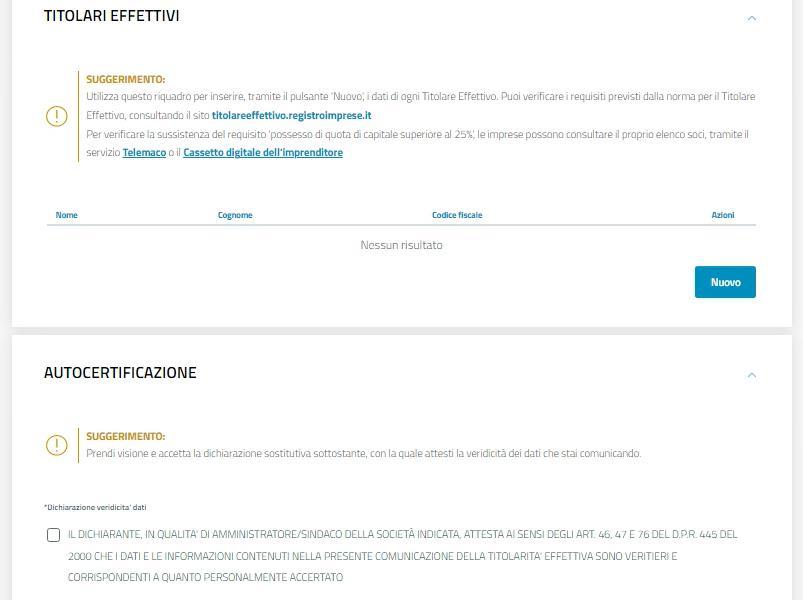 • Se il titolare effettivo è iscritto con il requisito TRA (poteri di rappresentanza, amministrazione o direzione) e viene iscritto nel registro delle imprese un rinnovo cariche in relazione al quale quel soggetto (titolare effettivo) cessa dalla carica di legale rappresentante o amministratore va presentata apposita comunicazione di variazione del titolare effettivo per comunicare anche la sua cessazione da titolare effettivo.