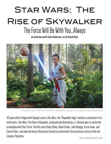 42 years after it began with George Lucas’s Star Wars, the “Skywalker Saga” reaches a conclusion in its ninth entry, Star Wars: The Rise of Skywalker, produced and directed by J.J. Abrams who co-wrote the screenplay with Chris Terrio. The film stars Daisy Ridley, Adam Driver, John Boyega, Oscar Isaac, and Carrie Fisher, and sees the heroic Resistance forced to contend with the mysterious return of the evil Emperor Palpatine. SOCIETY OF CAMERA OPERATORS · SOC.ORG