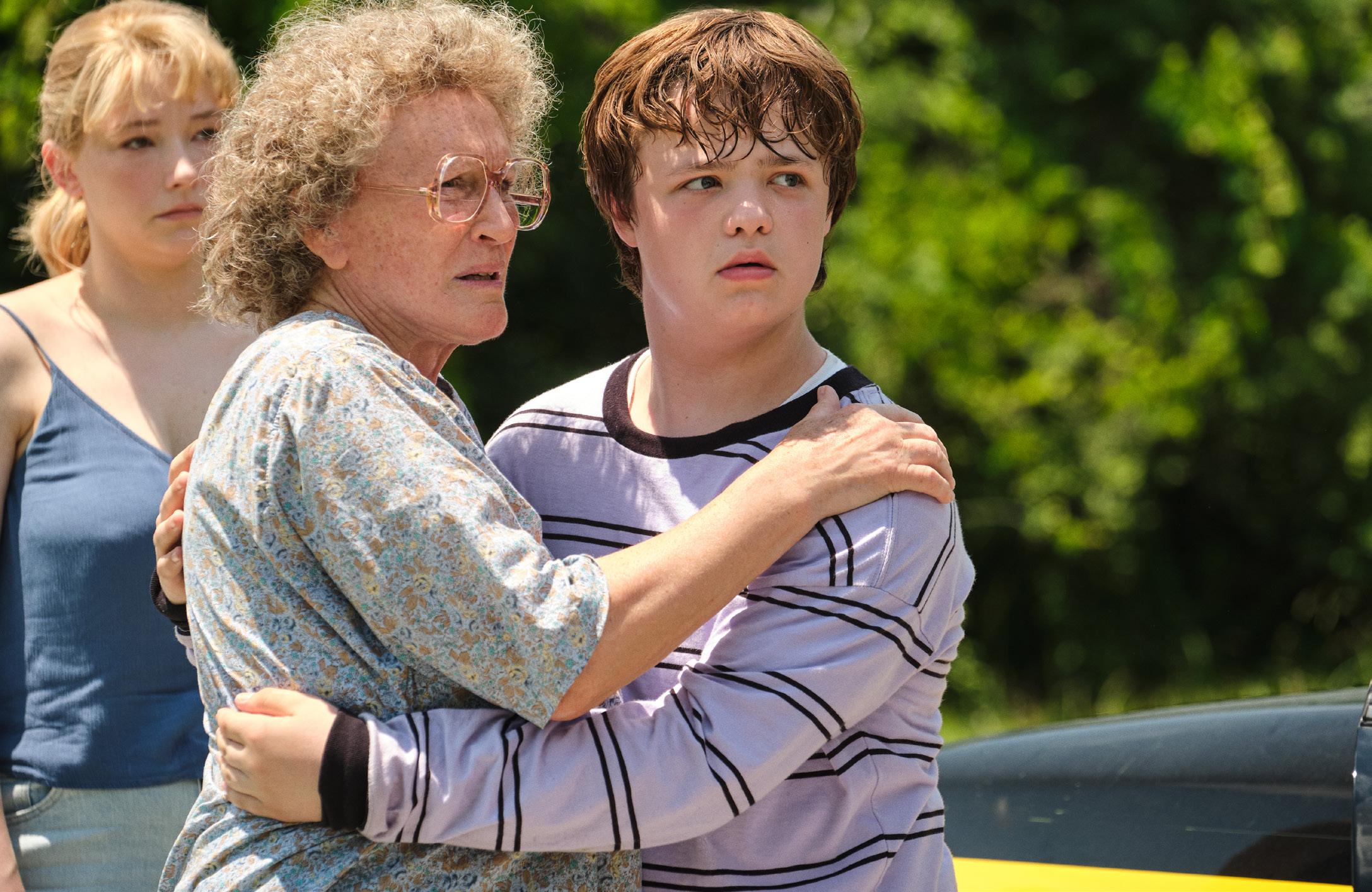 Above: Owen Asztalos and A camera/Steadicam operator Christopher T.J. McGuire. Below: HILLBILLY ELEGY: (L to R) Haley Bennett ("Lindsay”), Glenn Close ("Mamaw”), Owen Asztalos ("Young J.D. Vance"). Photos by Lacey Terrell/NETFLIX