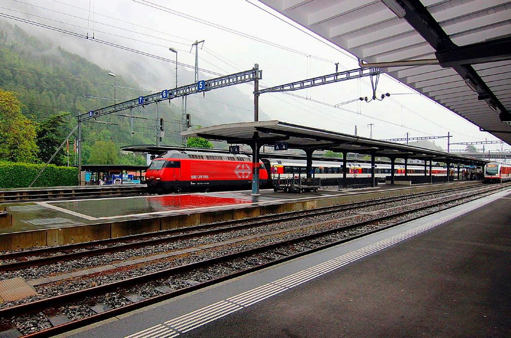 THE BERNESE OBERLAND RAILWAY (BOB) OPERATES ITS WORKSHOP HERE. FIVE TRACKS PROVIDE SPACE FOR MANOEUVRING. AND IT’S USUALLY VERY BUSY ON THE TRACKS. HOWEVER, NOBODY WANTS TO STAY IN ZWEILÜTSCHINEN. THIS IS HOW THE ROUTES PART, AS WELL AS THE WAGONS: THE TRAINS FROM INTERLAKEN ARE DIVIDED INTO TWO. ONE HEADS OFF TO GRINDELWALD. THE OTHER GOES TO LAUTERBRUNNEN.