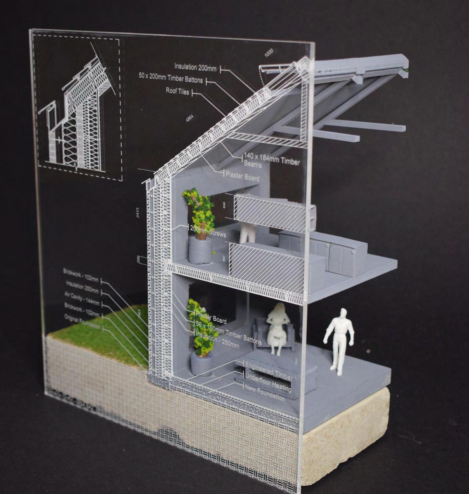 found my endeavour to create a physical model for many of my technologies detailed projects significantly helpful in understanding the structural composition. By modelling these small details both through CAD and physically, was able to further comprehend how the structure not only stands but also the process and order in which the parts fit together to achieve the final design. Additionally, this practice helped me understand the numerous design decisions made by the architect