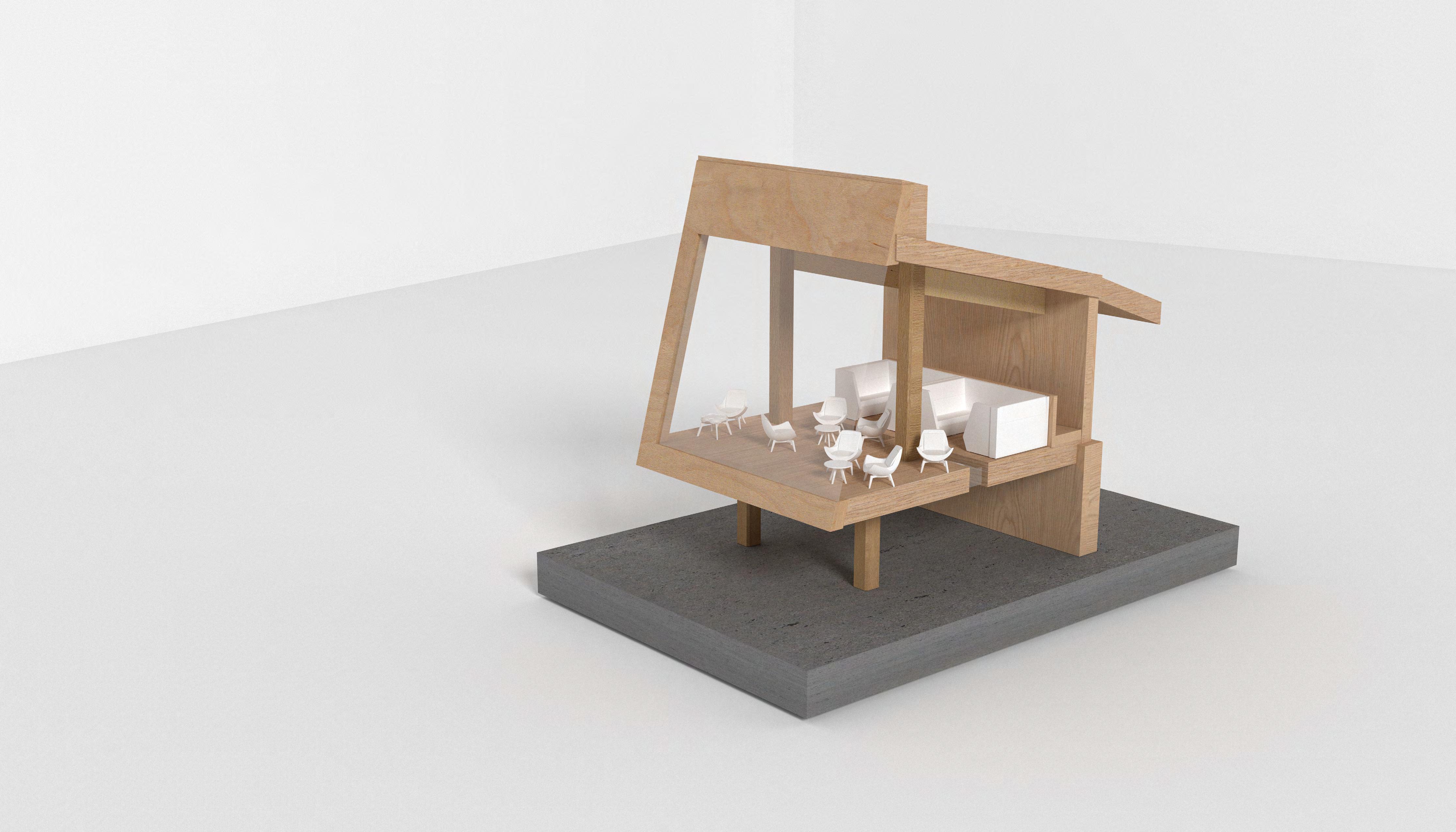 The build itself consisted of three structures, each with a unique focus. The first structure provided facilities such as toilets, kitchen and café, with both indoor and outdoor seating. Windows and walls were angled to focus views on the sky and tree line, emphasising the upward environment