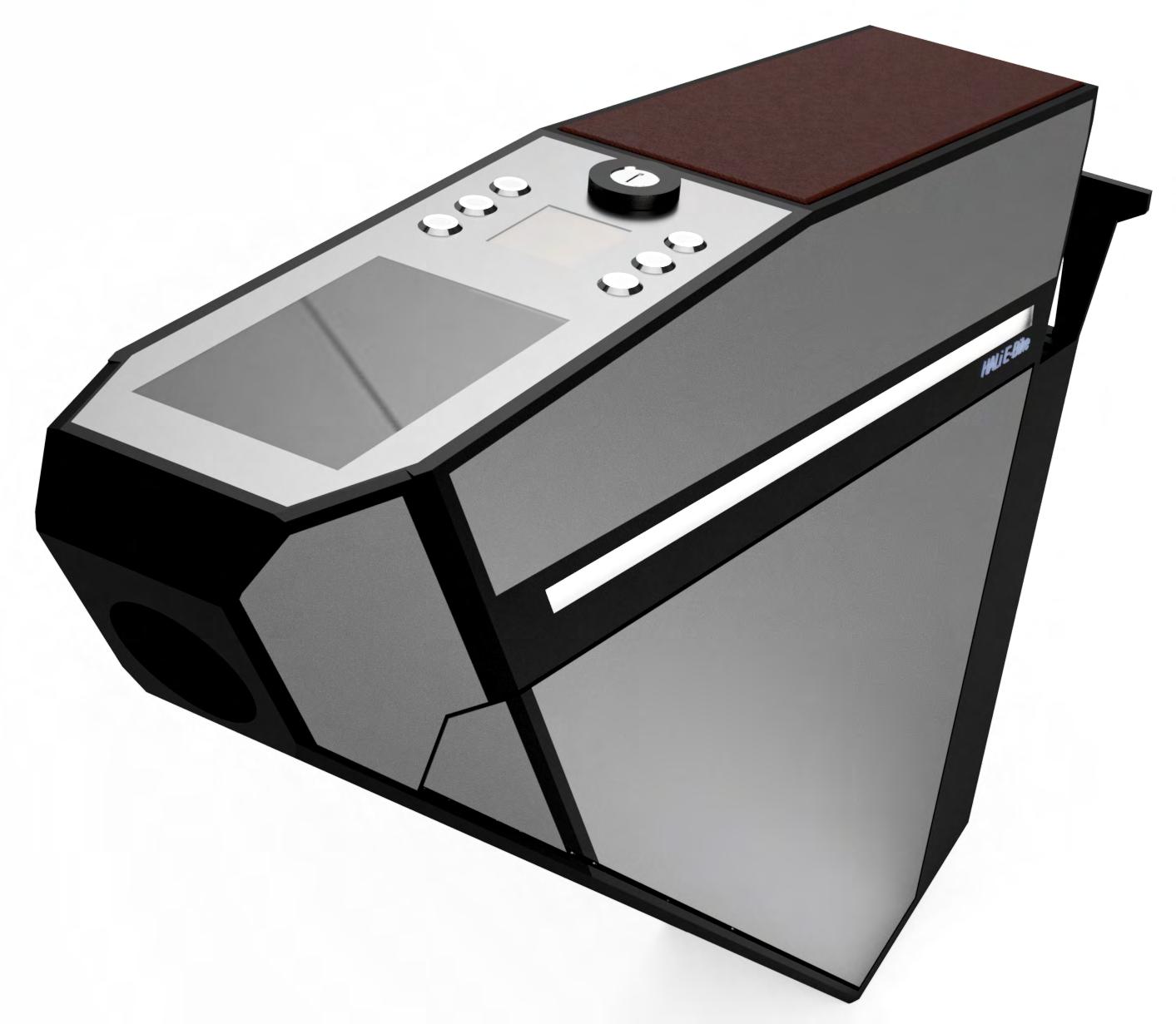 The primary unit incorporates a diverse range of materials and construction techniques. The base consists of a sturdy pine wood sheet, providing a flat and structurally sound foundation for the setup. The sides of the unit are constructed using a series of 250x250mm FDM 3D printed components, reinforced with 2mm zinc annodised aluminium sheets and securely fastened to the wooden base through a combination of bolts and precisionengineered friction fits, ensuring a precise mm-level alignment. The machine’s upper section is outfitted with a combination of UVblocking polycarbonate and glass for the lid and a stylish wooden and metal cover is employed for the control panel