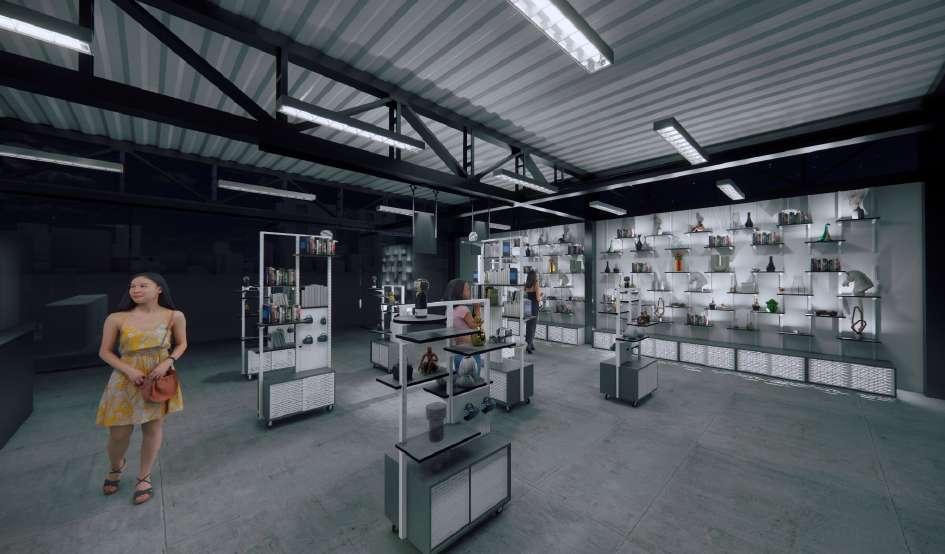 Proyecto propuesto para exhibir los diferentes objetos de empresas independientes que brinda el MAC en la entrada del museo. Es un estilo industrial y sobrío para resaltar los diferentes objetos a exhibir. Se planteó dos tipos de exhibidores modulares para brindar más opciones al ubicarlos en la zona. Además, se propusó un exhibidor amplio empotrado a la pared con estantes que se puedan ubicar a diferentes alturas, y unos anclajes que se deslizan para exhibir los cuadros.Los materiales fueron los perfiles ranurados y tableros de melamine