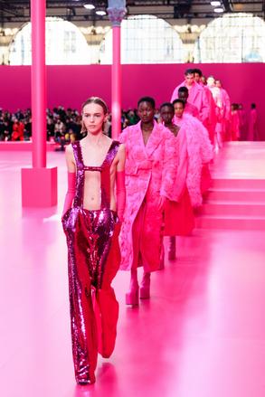 Lo que el diseñador quería transmitir con estos colores es un mensaje de amor, energía, compasión, empatía, libertad y vitalidad. El color rosa es uno de los colores que más representa estas cosas. Pierpaolo eligió usar estos colores en looks monocromaticos para que se pueda apreciar mejor y llevar el ojo exclusivamente al color.