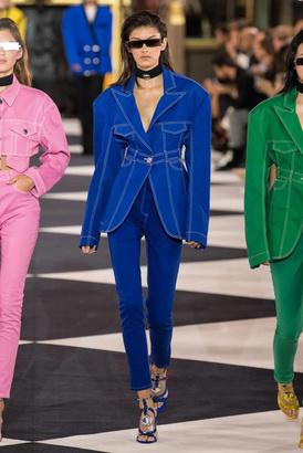 Mucho de esta colección fue diseñado por Oliver Rousteing para dividir la opinión y garantizar la atención: pantalones de una sola pierna y monos, Big Bird con flecos desgreñados de resina de corte fino o una versión en azul con las suaves costuras de sastre de una chaqueta clásica de Chanel perfilada en negro.