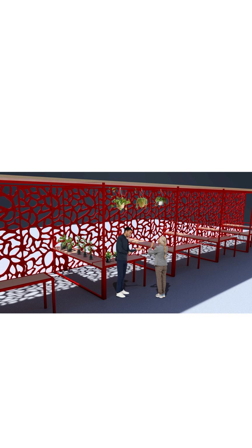"Una de las principales características de este módulo es el diseño singular de la celosía que recubre toda su parte posterior, la cual hace referencia a un tomate limachino cortado por la mitad."