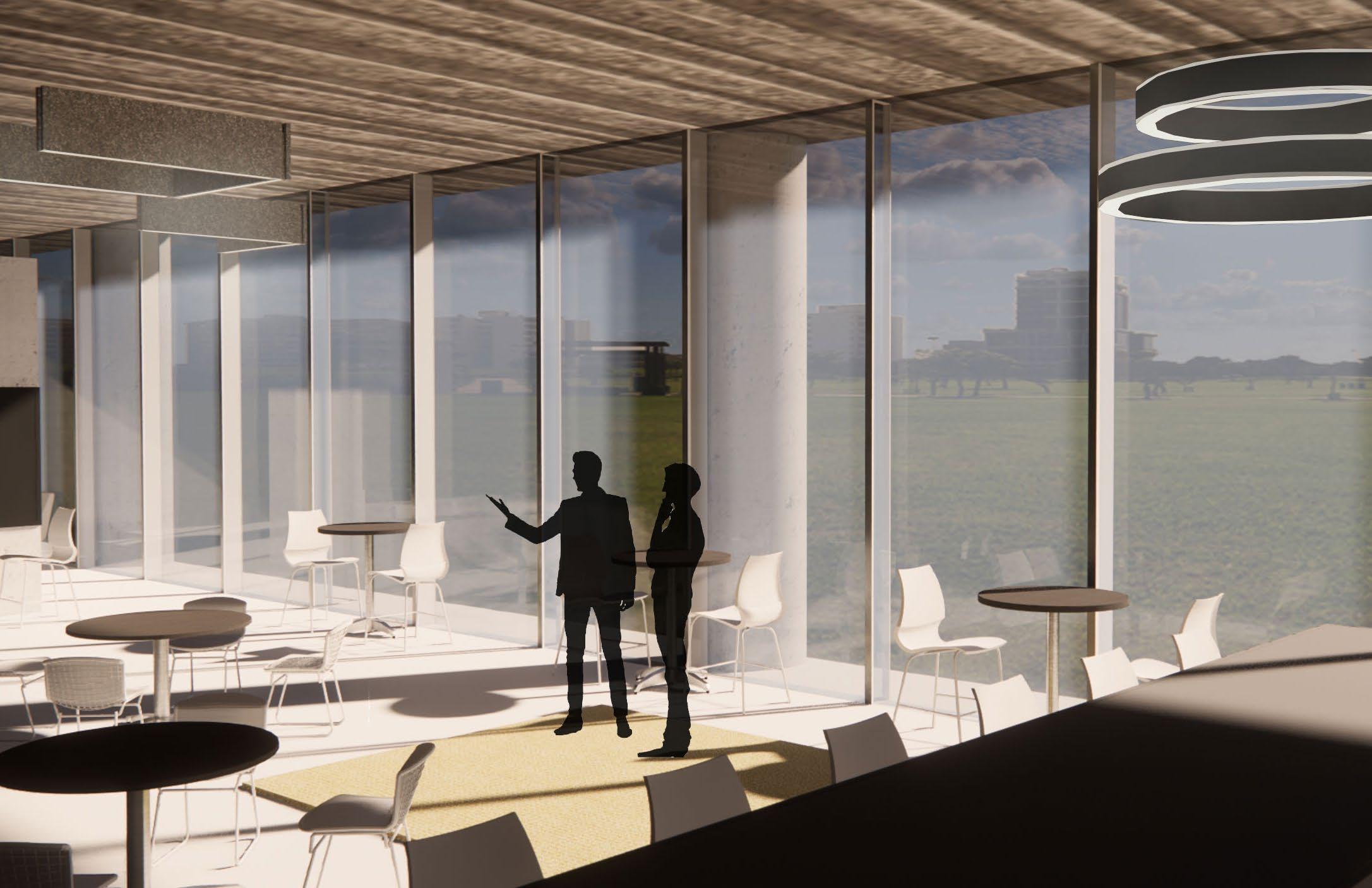 The newly proposed Farnsworth project features all around flex space that has been planned out with intention of high use of natural light. Spaces are balanced with a neutral pallet of materials including: -concrete flooring -wood -modular partitioning