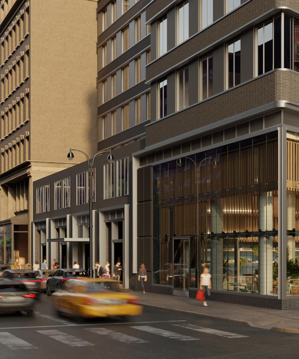 Involvement: This project is a renovation of an existing building in historic Herald Square, across from the iconic Macy’s. This project includes a full interior buildout and complete demolition of the facade at the ground level. This is a hybrid model for Capital One and includes a large coffee bar cafe area as well as traditional teller lines. My responsibilities include initial schematic storefront design, test fit iterations for both the front of house main level and the back of house cellar level, design development through modeling, rendering and sketching, FF&E research and selection, materials research for both interior and exterior applications, progress presentation drawings and graphics, consultant coordination and construction drawings. The project began construction January 2023 with an expected completion in December. Above right is an initial concept sketch with look/feel images, right is an exterior render by a consultant.