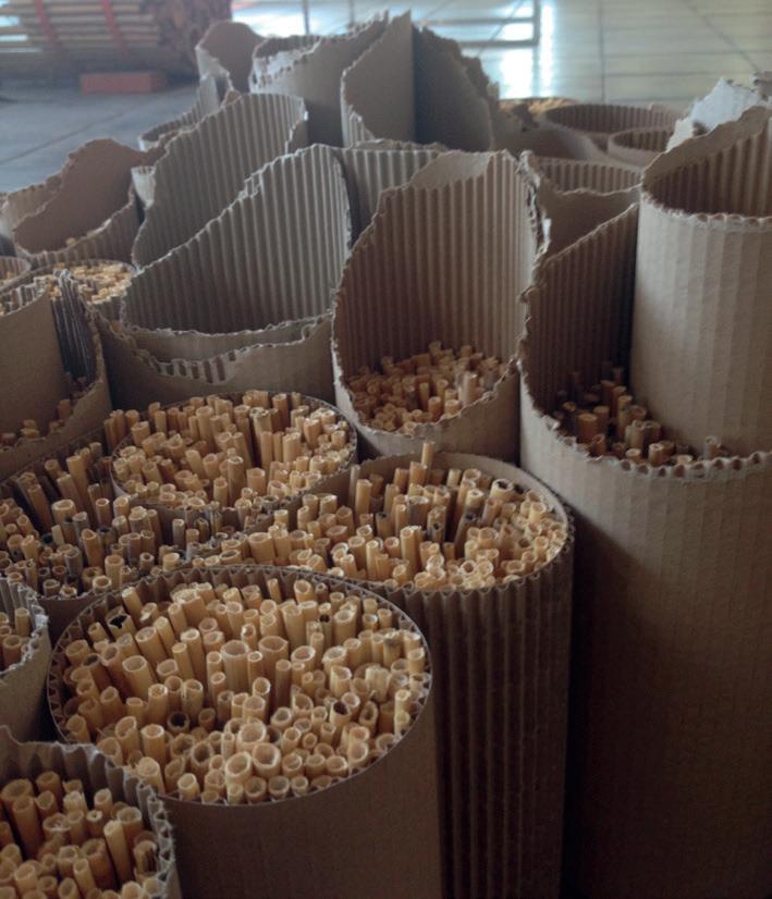Rouleaux de carton ondulé, cannisses en bambou, agrafes