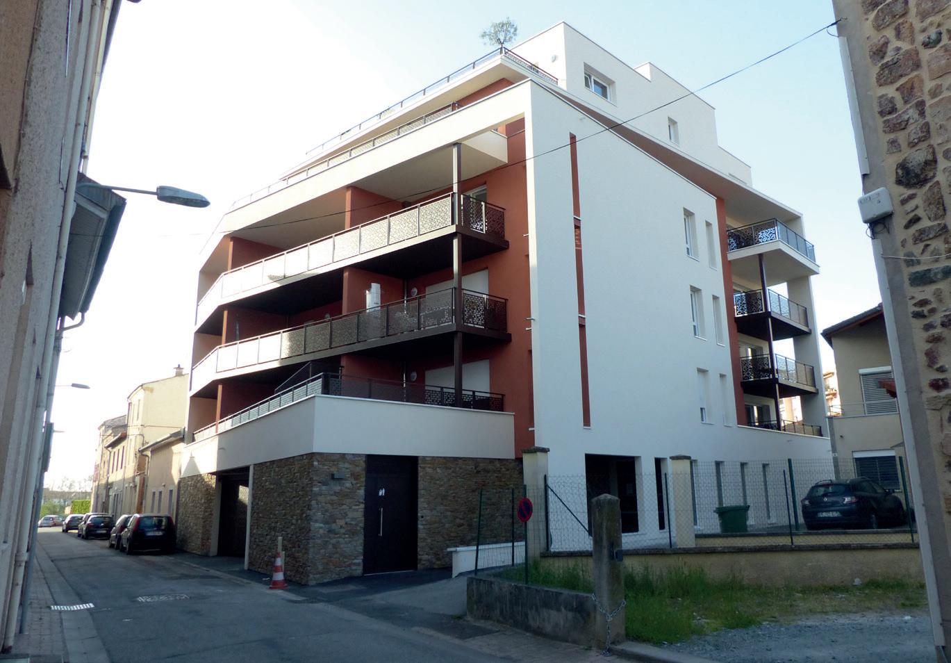 L’immeuble vient ici s’inscrire en lieu et place d’un entrepôt ancien de pierres rouges. L’idée était de créer un maximum de logements pour la surface totale de la parcelle en répondant aux critères du bailleur social. Les deux derniers étages sont réservés aux logements en accession profitant de la vue dégagée sur la Loire. Chacun des appartements ainsi que les communs restent confortables et baignés de lumière.