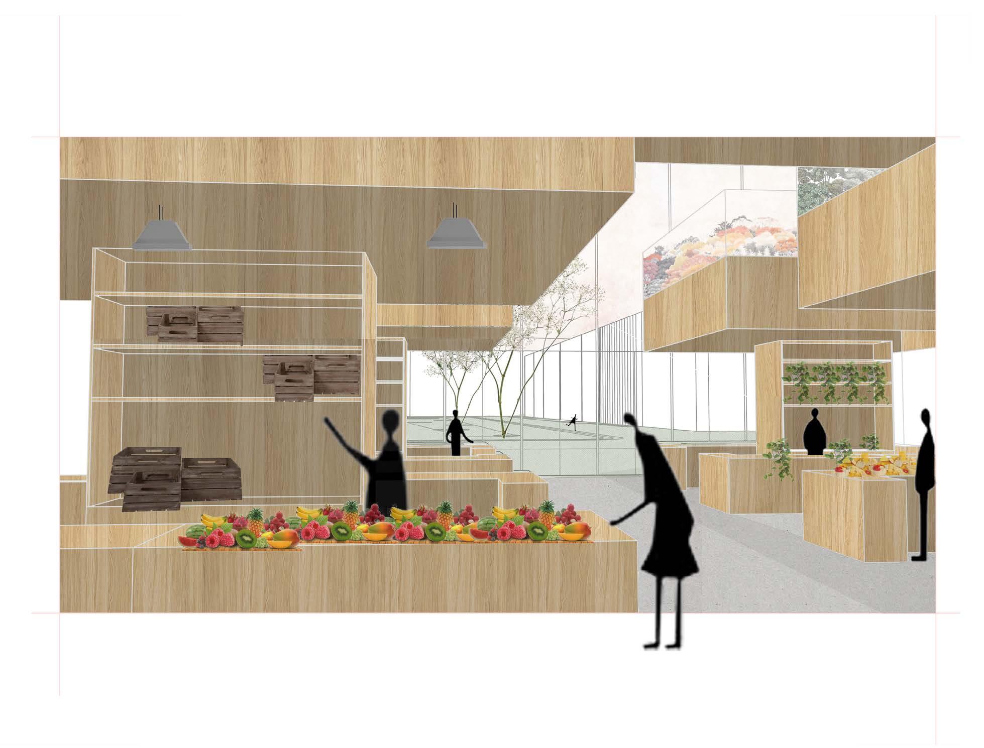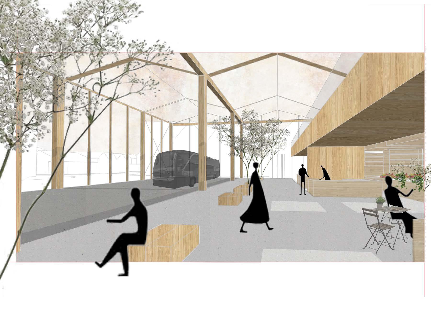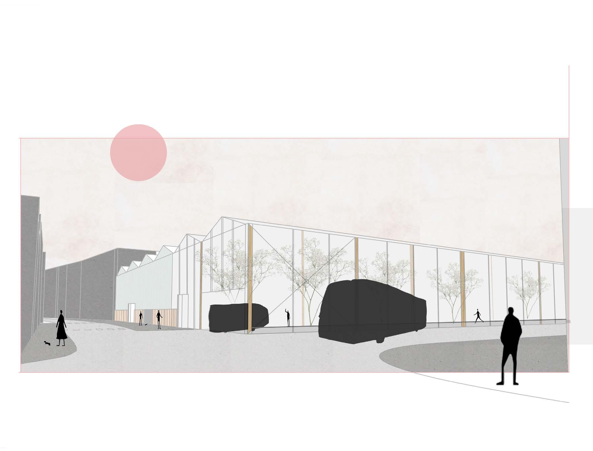 Orkney is a small island in Scotland. On this site we had to study the needs of the inhabitants of this small island to find out the needs in public facilities. Because tourists come frenquently in the island and use bus as their main transport, the project is a bus station and a covered market. The current bus station cannot meet all their needs. The bus station and the covered market are taking the form of a large greenhouse where produce could be grown directly on site. Like the heart of the city, the building opens onto the new park proposed as part of urban renewal. Thinking about the station also means thinking about waiting, about the delay of some people who have to look for and find the signs as quickly as possible... This is why, by having the look of a greenhouse and by playing on transparency, the buses can stop directly in the building, covered to be sheltered on rainy days for example (many rainy days in Scotland)...