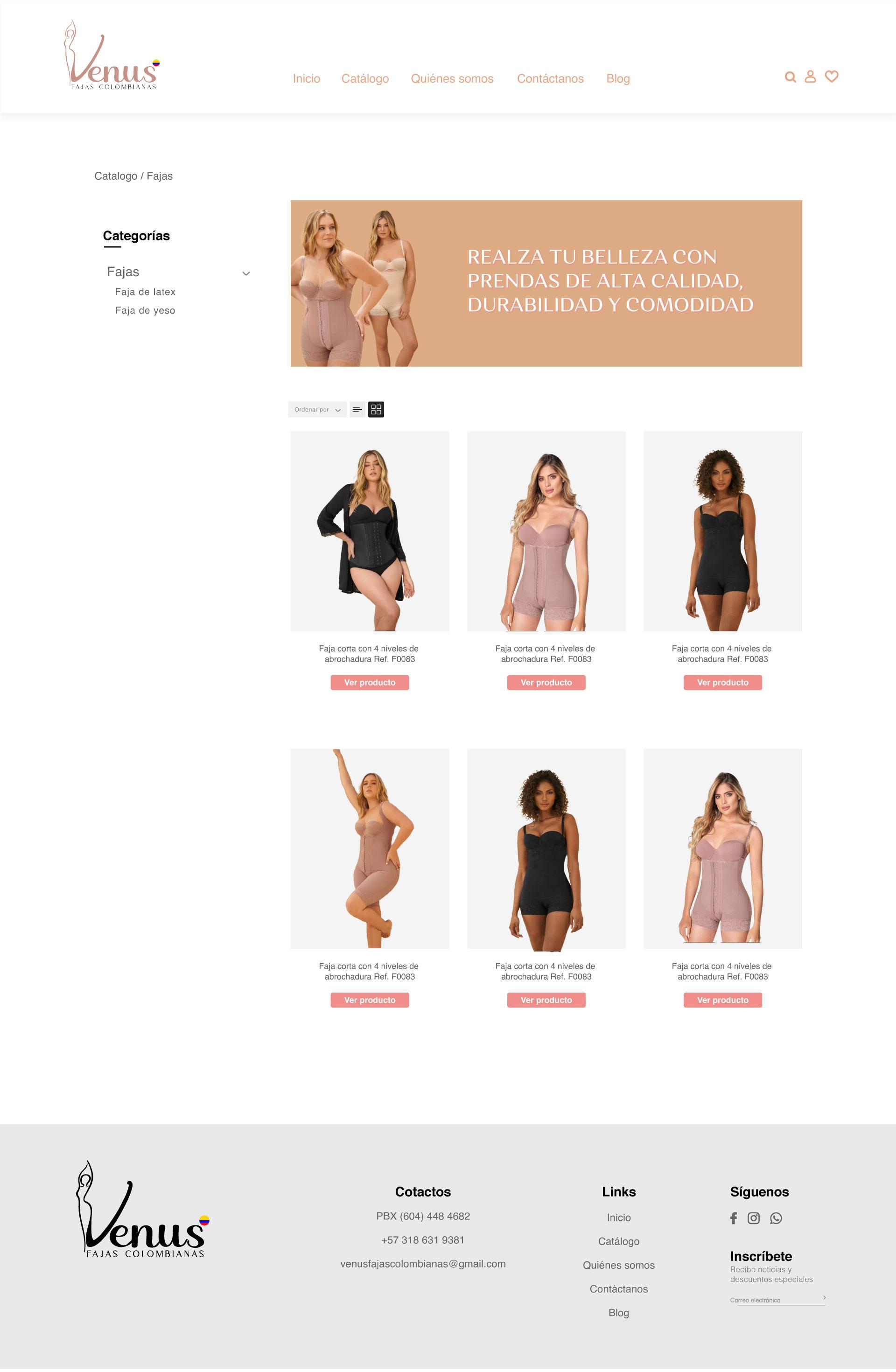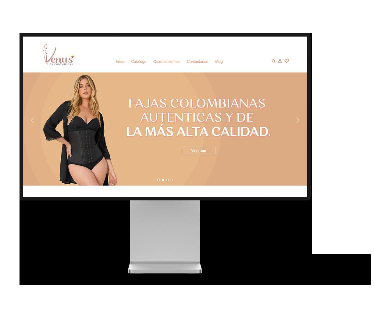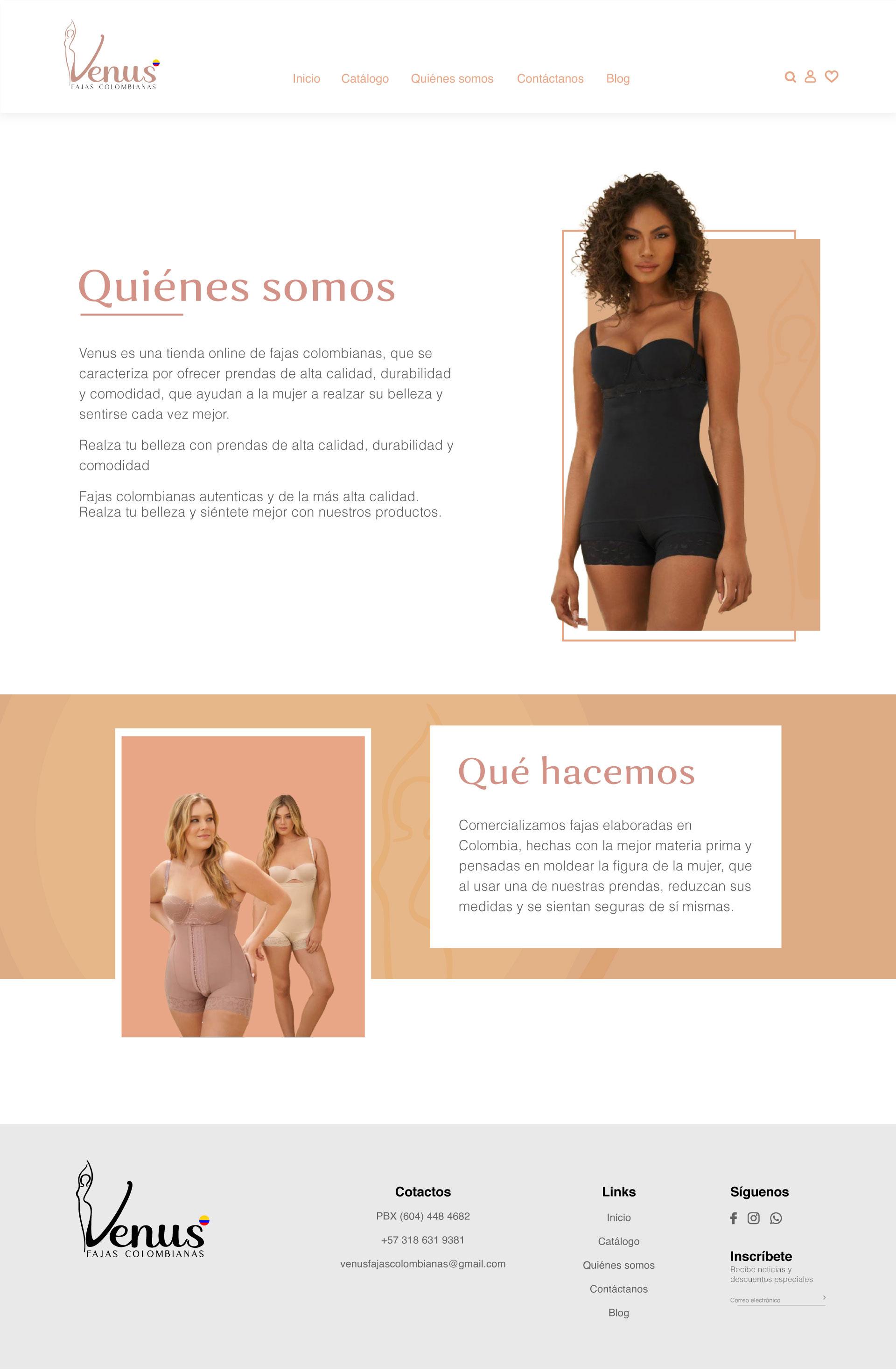 Diseño del sitio web para el catálogo de productos de la marca Venus, empresa de fajas colombianas autenticas.