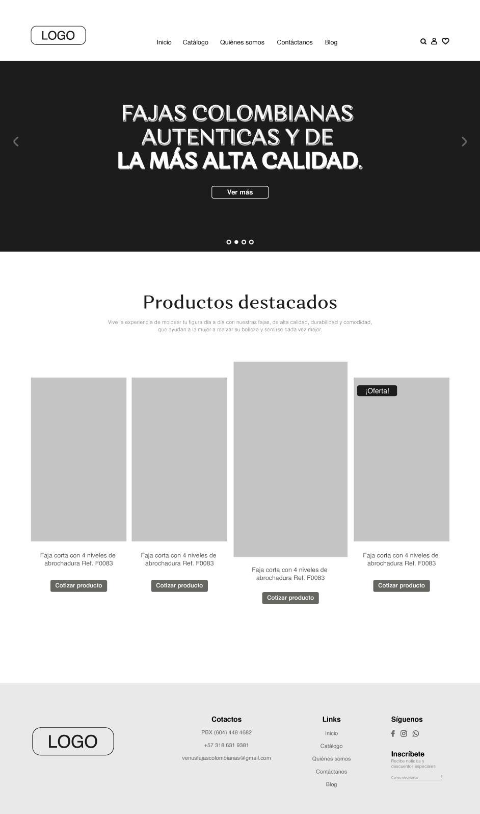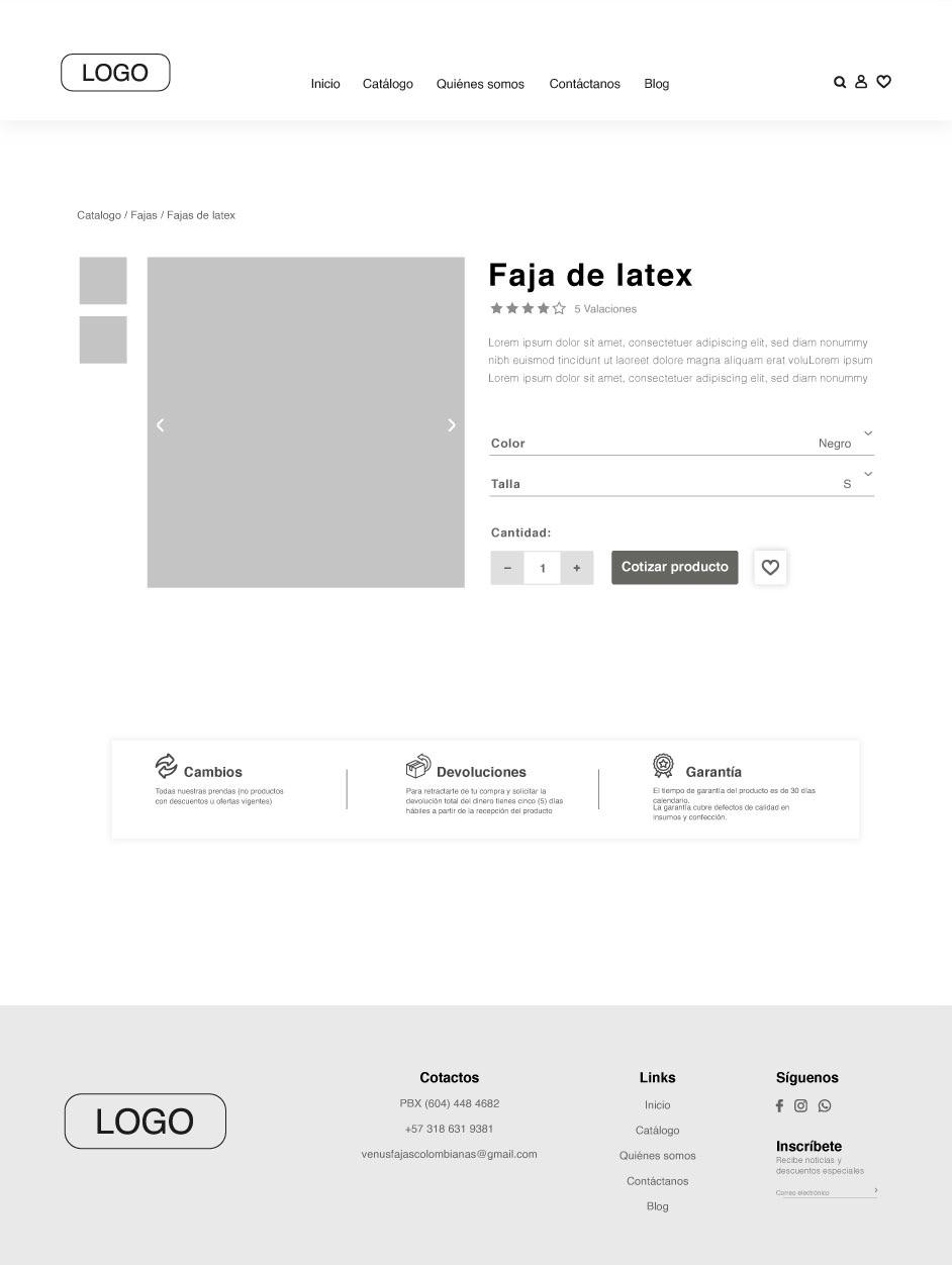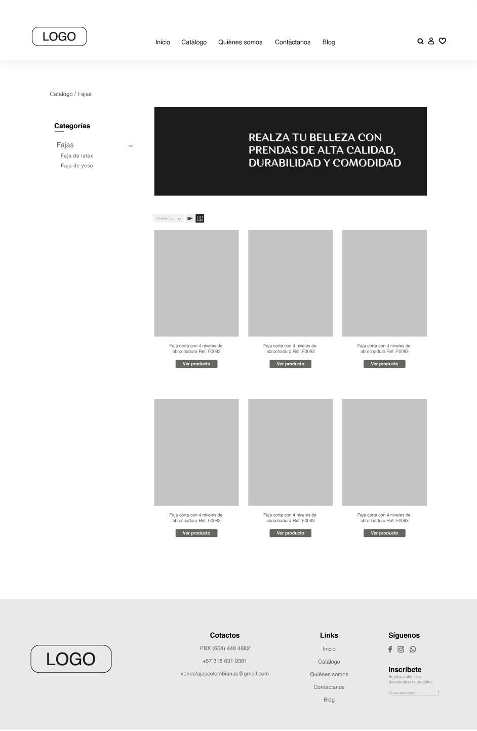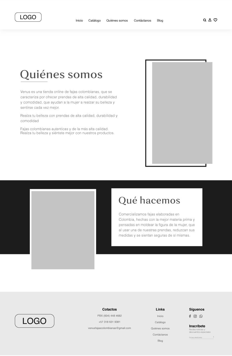 Diseño del sitio web para el catálogo de productos de la marca Venus, empresa de fajas colombianas autenticas.