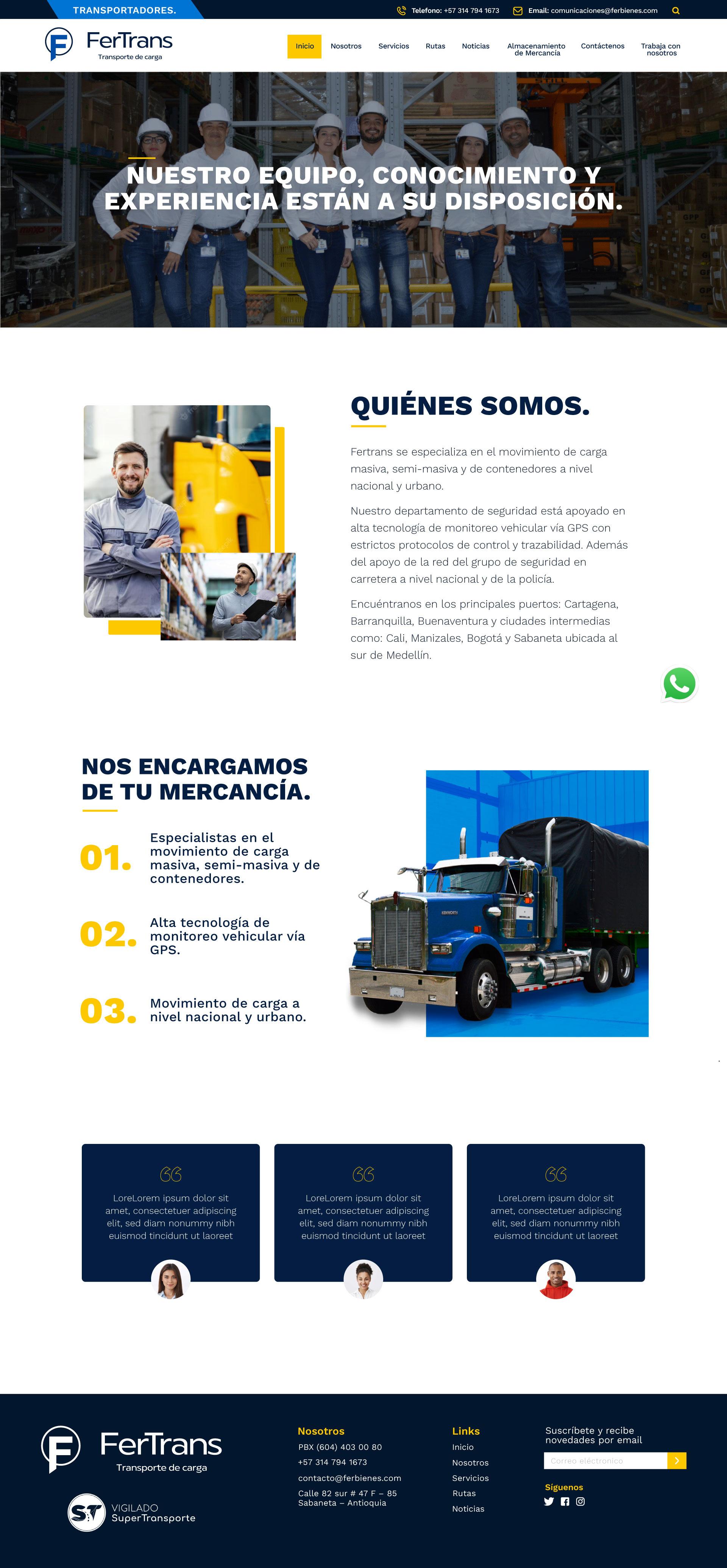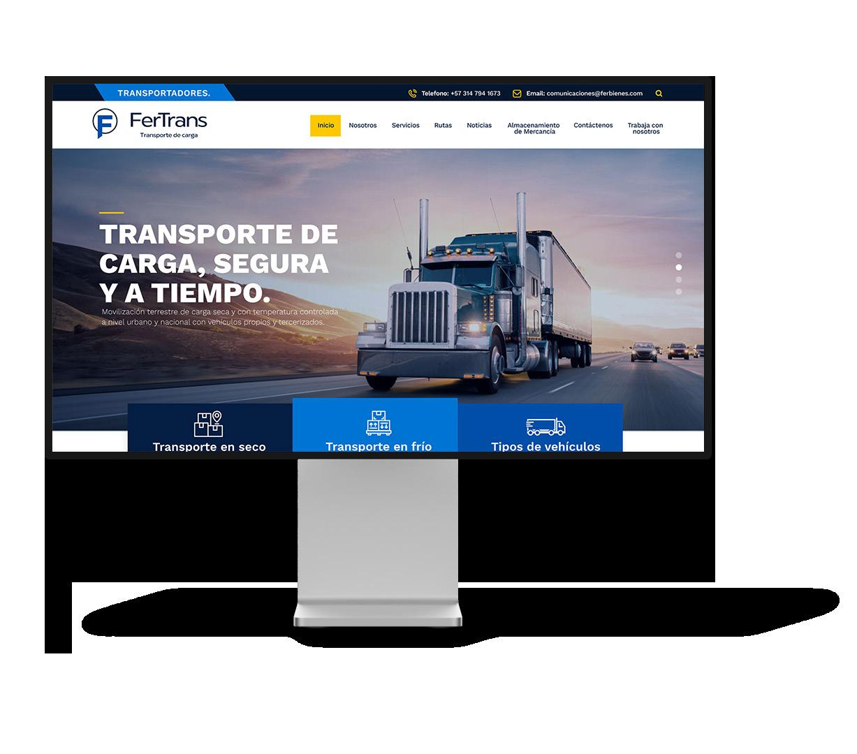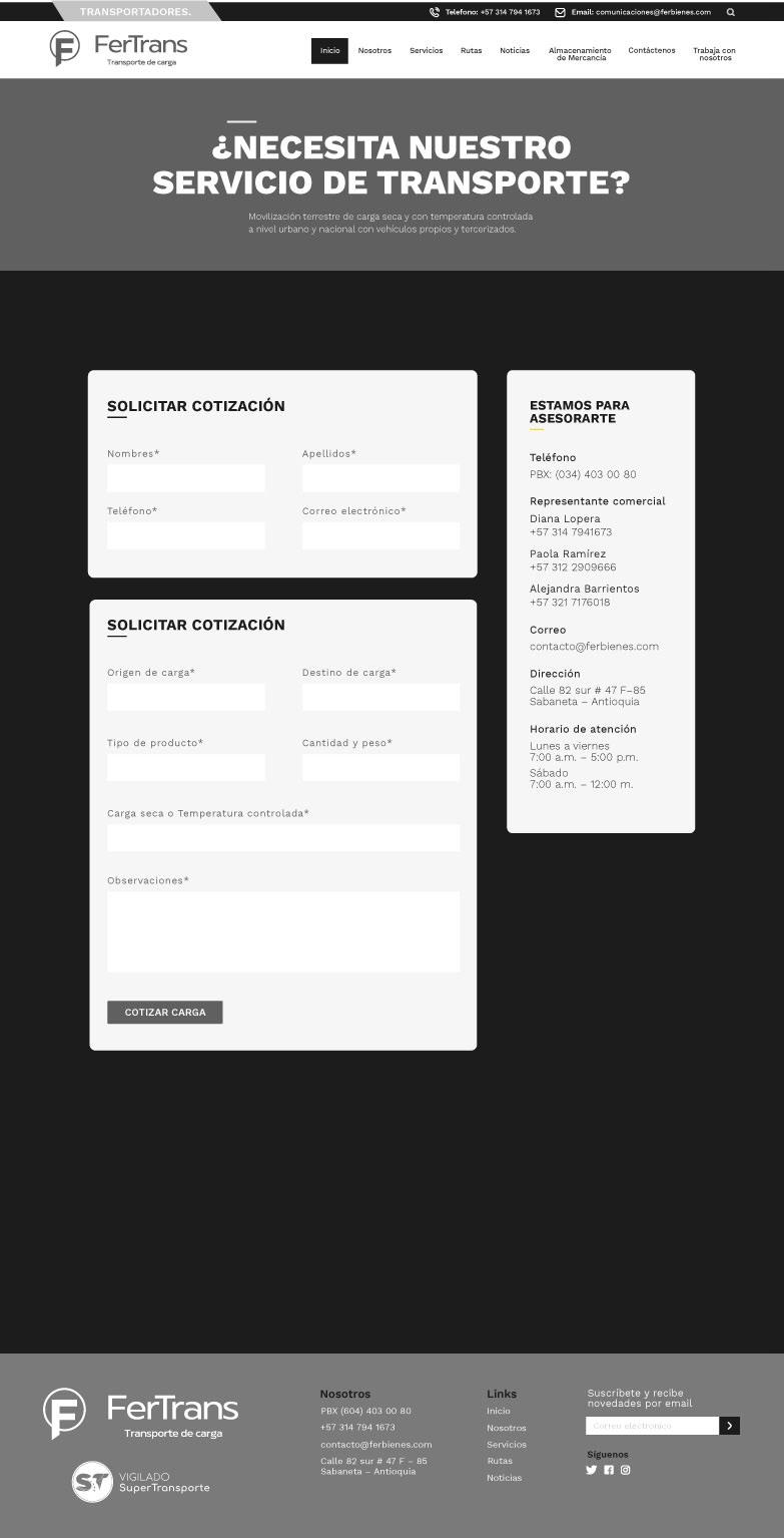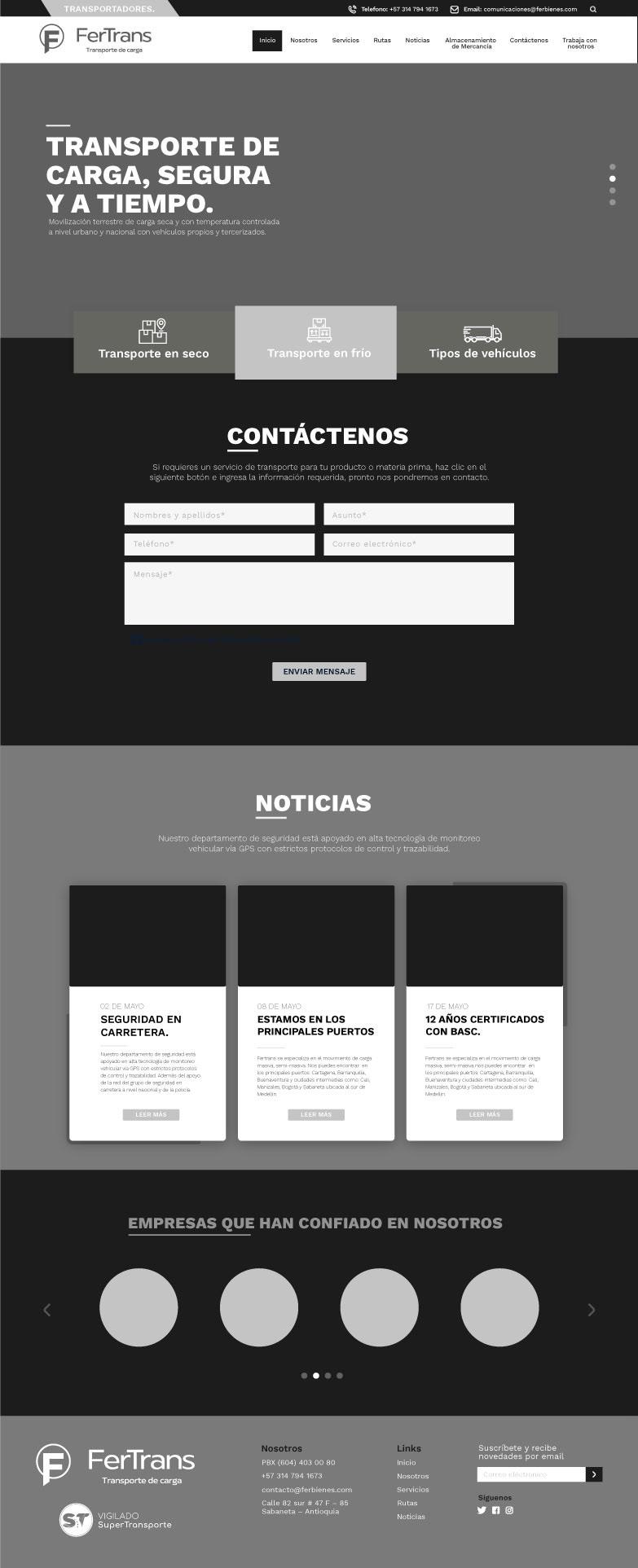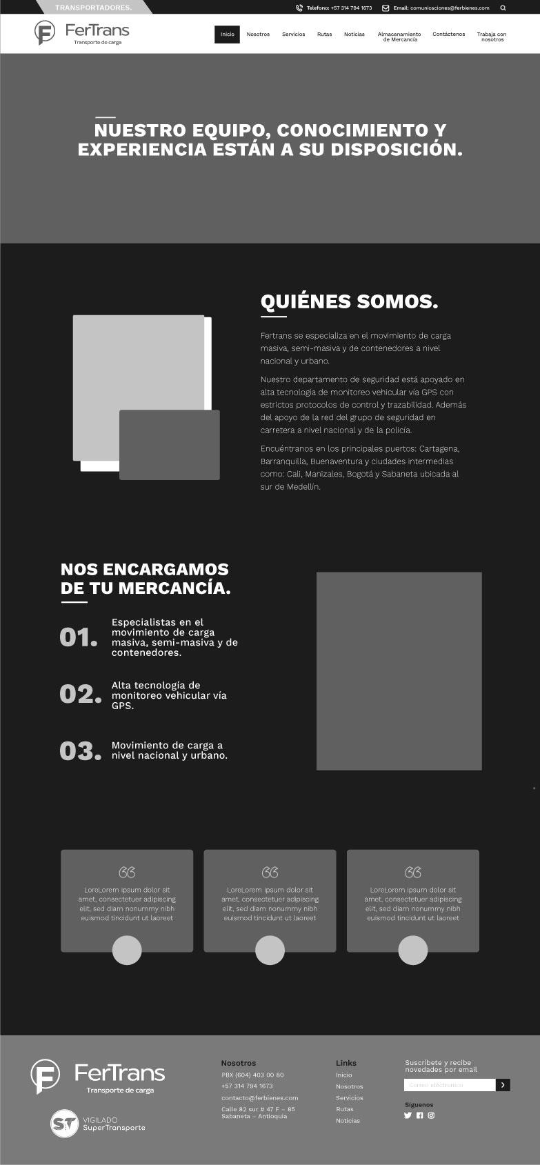 Creación y diagramación del wireframe, diseño final para el sitio web de la marca Fertrans. Empresa especializada en el movimiento de carga masiva y semi-masiva a nivel nacional.