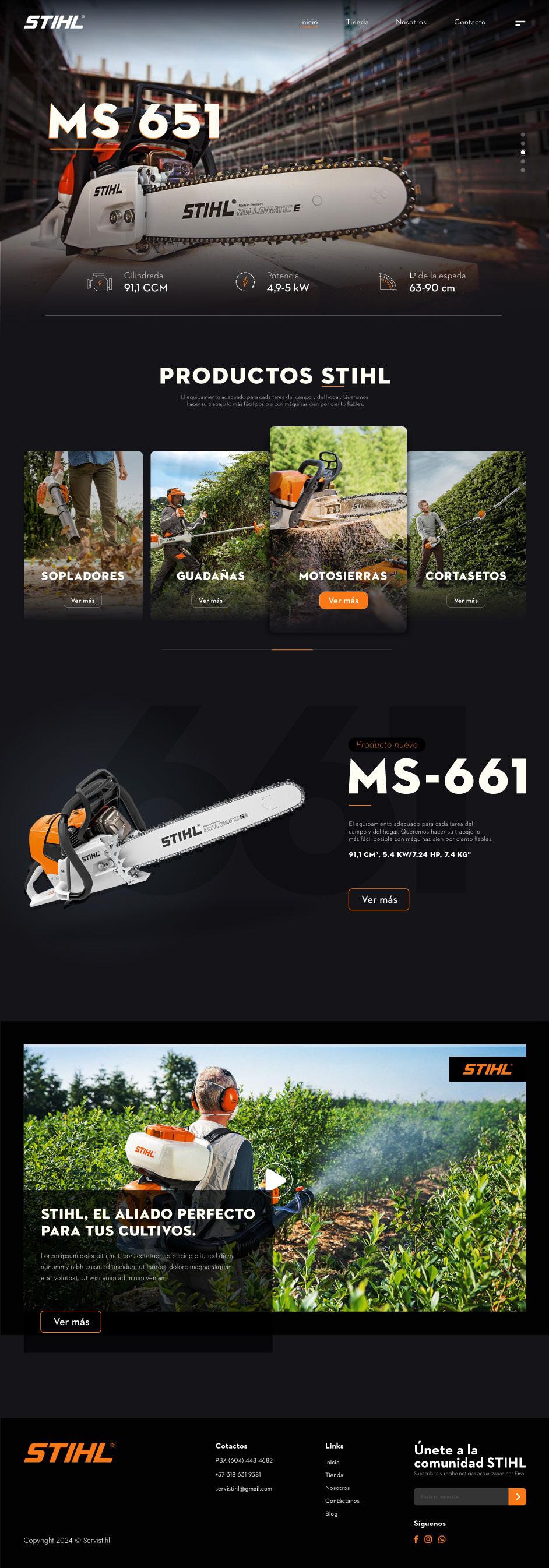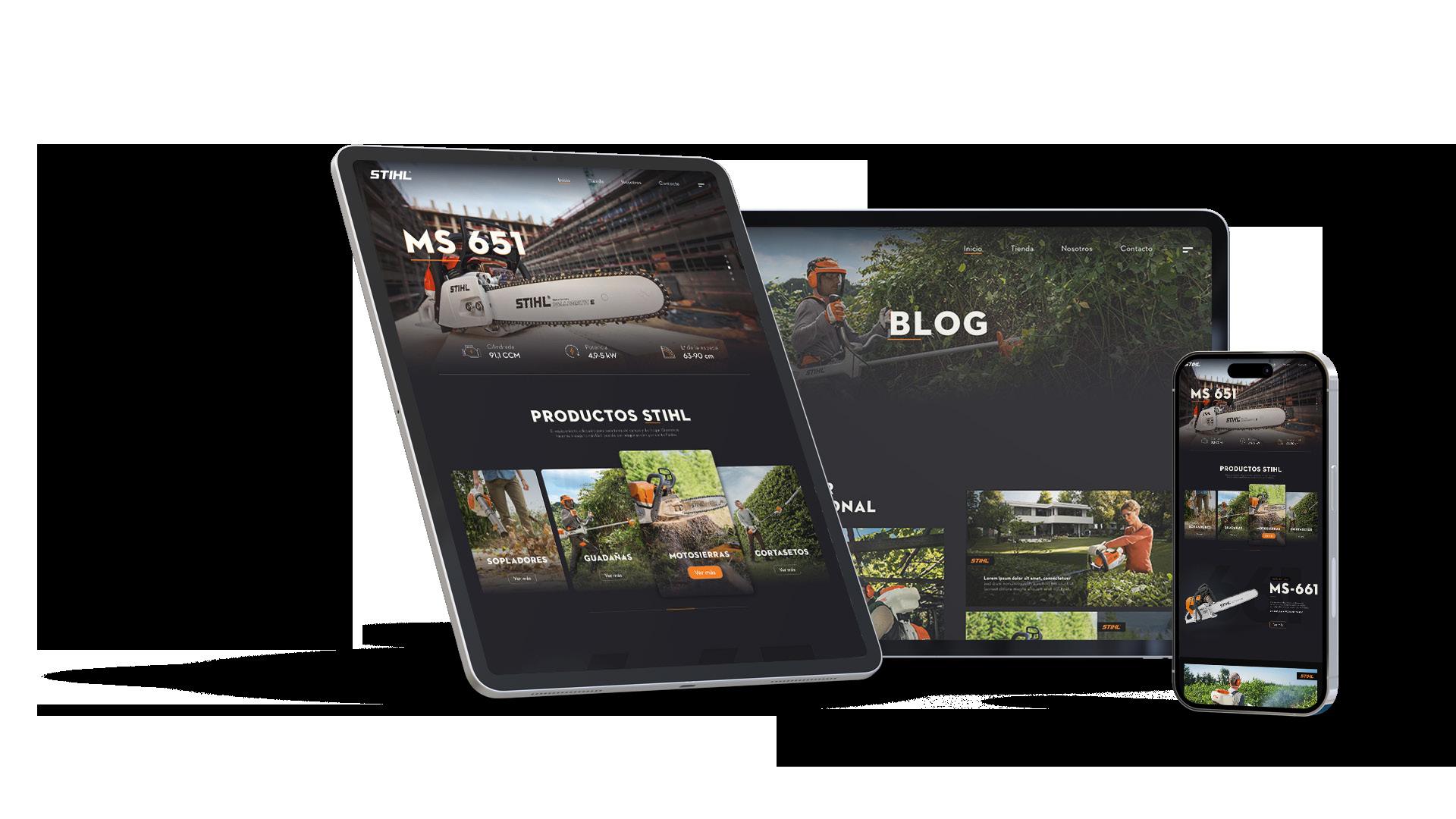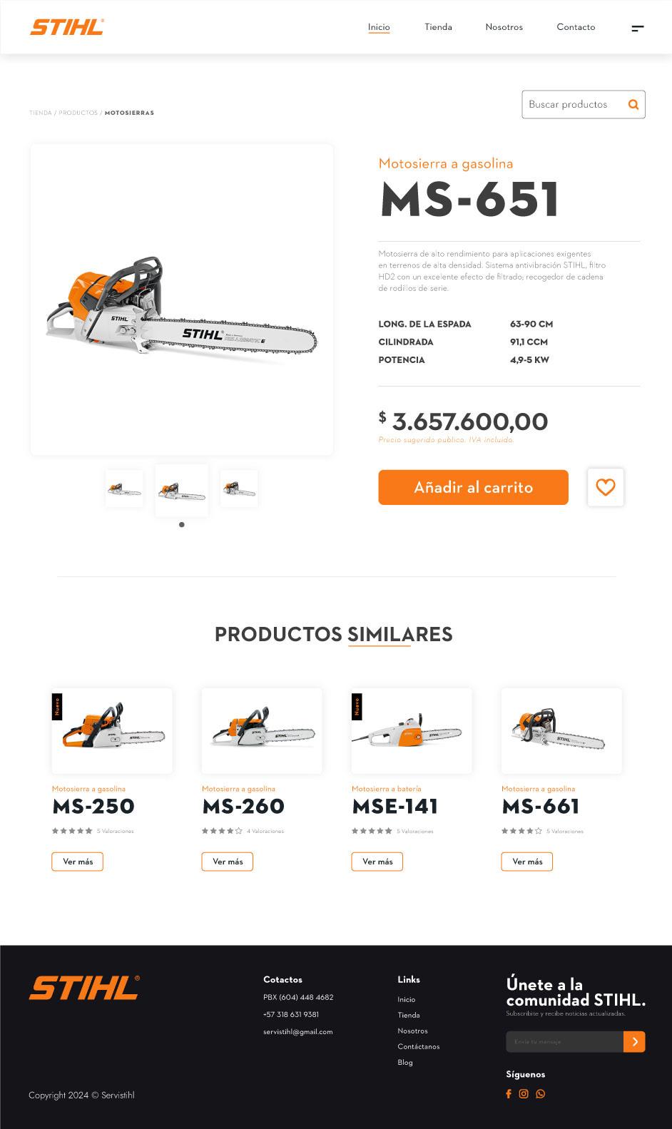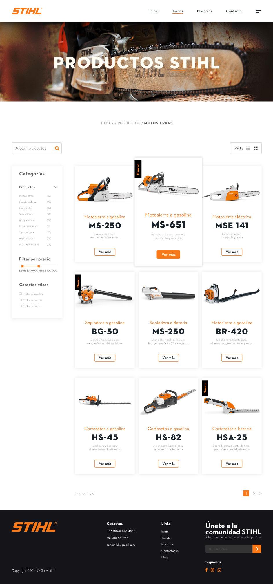 Diseño de Ecommerce la marca Servistihl de Fredonia, Empresa dedica a vender productos para trabajo forestal y agrícola. Se hace la maquetación responsive del sitio web para todos los dispositivos.