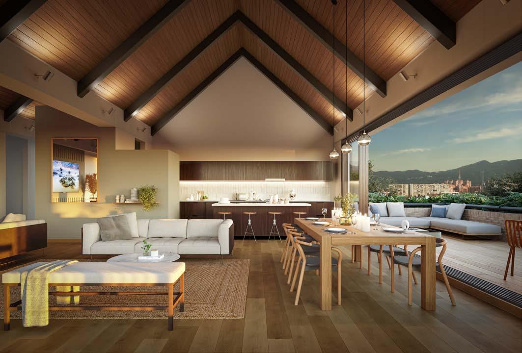 Nuestros arquitectos buscaron capturar la esencia del estilo suizo, y armonizar el proyecto con la arquitectura del barrio generando un estilo moderno priorizando la simplicidad y funcionalidad. Inspirados en líneas limpias, espacios abiertos y el uso eficiente de materiales, su enfoque fue crear un diseño que equilibrara estética y practicidad. Cada detalle está pensado para maximizar la luz natural, aprovechando la forma del terreno para generar hermosas vistas a la ciudad e integrando el entorno natural con un diseño interno elegante y acogedor.