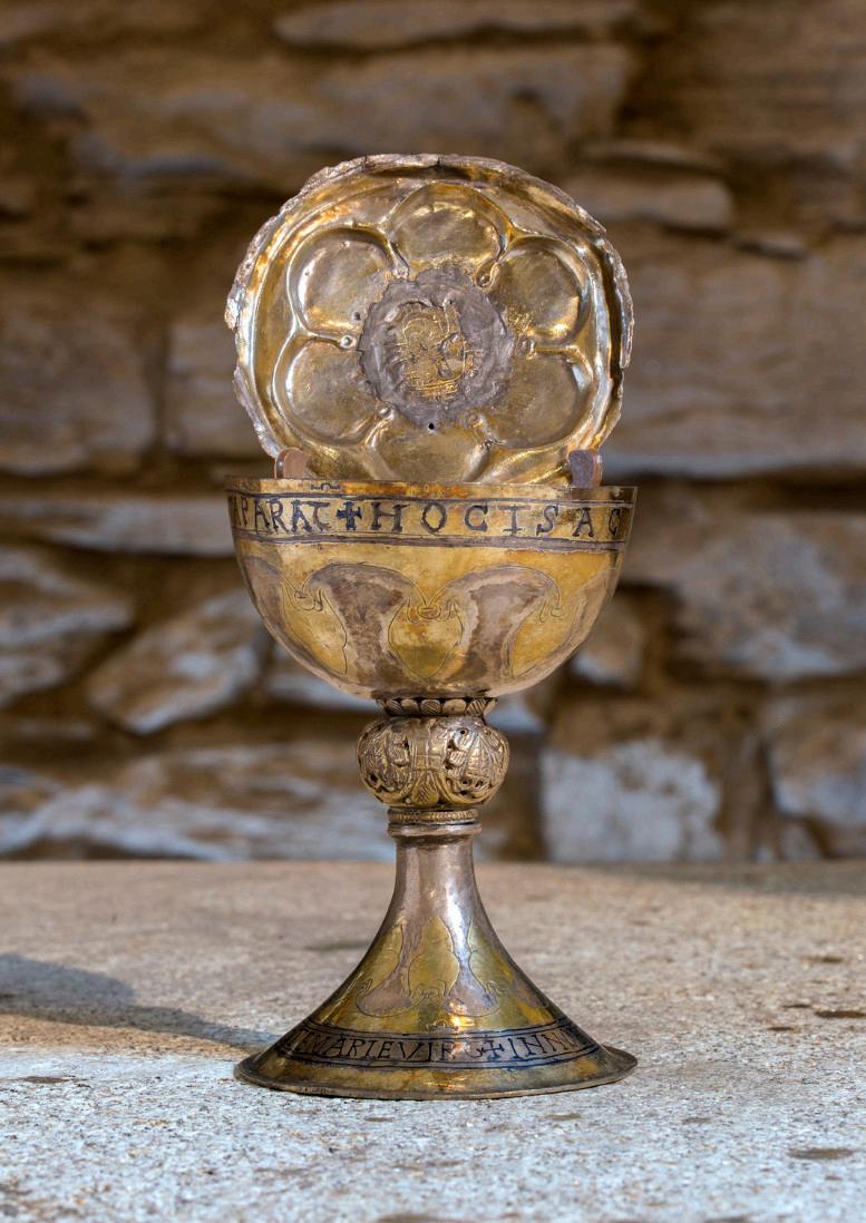 O seu Cáliz milagroso figura no escudo de Galicia.
