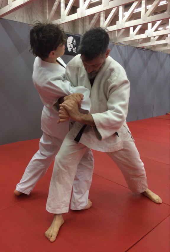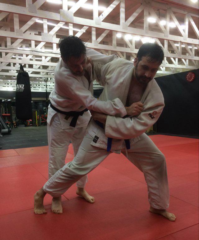Después de sacarme la casaca de Judo, me vendo los ojos y trabajo el cuerpo a cuerpo, potenciando mi sensibilidad táctil, de pie, o en el suelo. Lo que vemos en las películas, del bloquear golpes o redirigirlos estando con los ojos vendados, es fantasía! Si no tienes contacto con el cuerpo del otro, ni te enterarás como te golpearon!